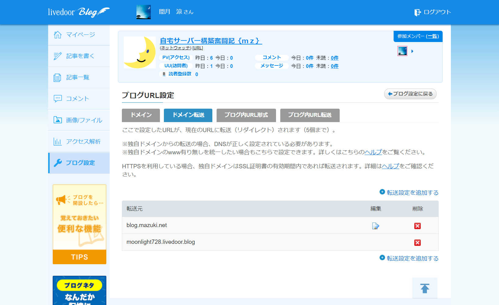 2日前にムームードメインにて独自ドメインを取得し、当ブログサイトもhttps://moonlight728.livedoor.blogからhttps://blog.mazuki.netに変更になりました。
